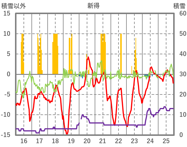 | 日 | 時 | 気温 | 降水 | 風向/風速 | 日照 | 積雪 | 降雪 |