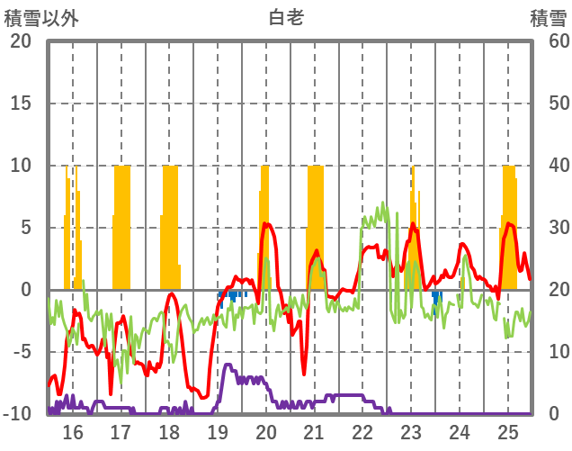 | 日 | 時 | 気温 | 降水 | 風向/風速 | 日照 | 積雪 | 降雪 |