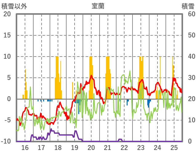 | 日 | 時 | 気温 | 降水 | 風向/風速 | 日照 | 積雪 | 降雪 |