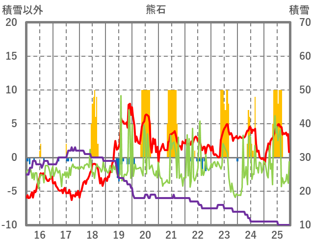 | 日 | 時 | 気温 | 降水 | 風向/風速 | 日照 | 積雪 | 降雪 |