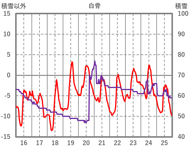 | 日 | 時 | 気温 | 降水 | 風向/風速 | 日照 | 積雪 | 降雪 |