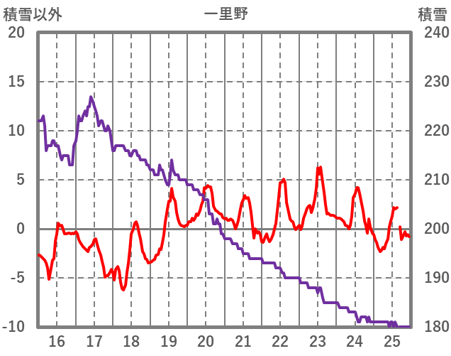 | 日 | 時 | 気温 | 降水 | 風向/風速 | 日照 | 積雪 | 降雪 |