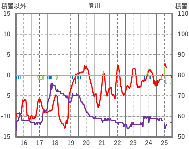 | 日 | 時 | 気温 | 降水 | 風向/風速 | 日照 | 積雪 | 降雪 |