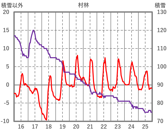 | 日 | 時 | 気温 | 降水 | 風向/風速 | 日照 | 積雪 | 降雪 |
