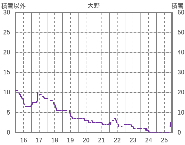 | 日 | 時 | 気温 | 降水 | 風向/風速 | 日照 | 積雪 | 降雪 |