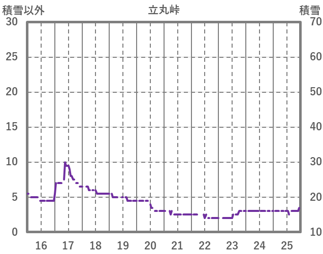 | 日 | 時 | 気温 | 降水 | 風向/風速 | 日照 | 積雪 | 降雪 |