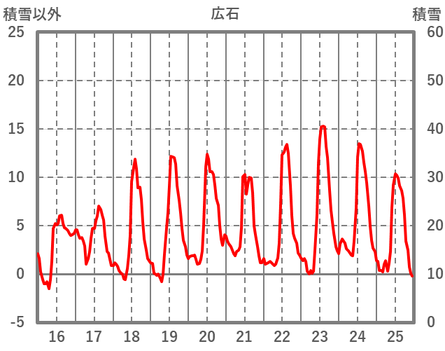 | 日 | 時 | 気温 | 降水 | 風向/風速 | 日照 | 積雪 | 降雪 |