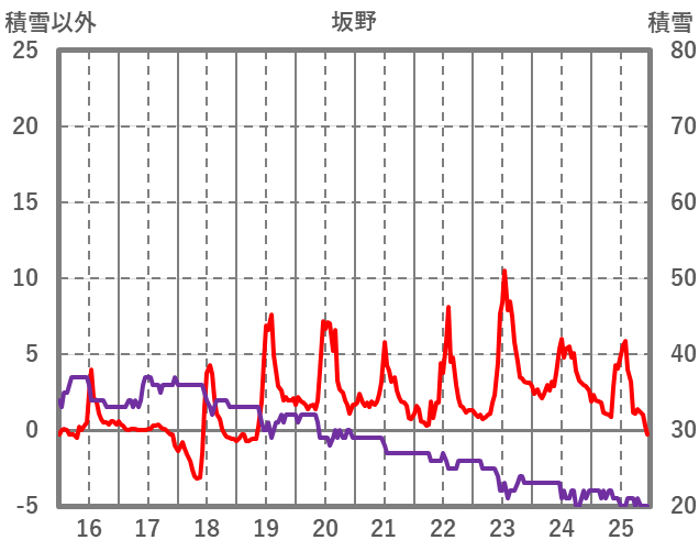 | 日 | 時 | 気温 | 降水 | 風向/風速 | 日照 | 積雪 | 降雪 |