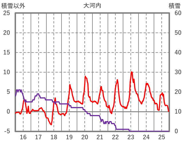 | 日 | 時 | 気温 | 降水 | 風向/風速 | 日照 | 積雪 | 降雪 |
