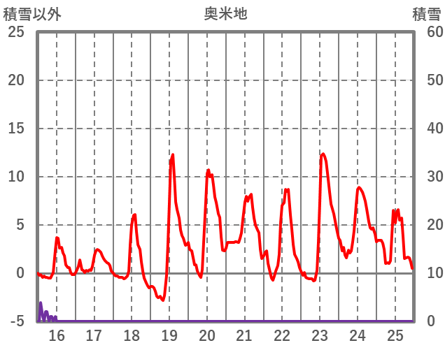 | 日 | 時 | 気温 | 降水 | 風向/風速 | 日照 | 積雪 | 降雪 |