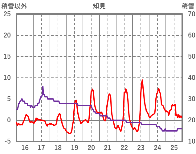 | 日 | 時 | 気温 | 降水 | 風向/風速 | 日照 | 積雪 | 降雪 |