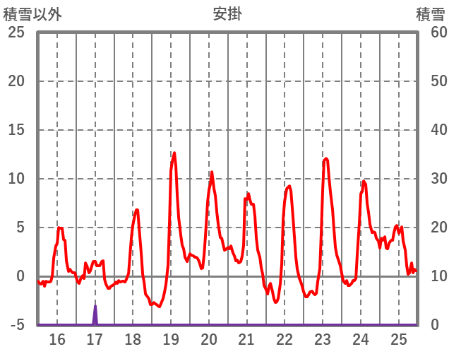 | 日 | 時 | 気温 | 降水 | 風向/風速 | 日照 | 積雪 | 降雪 |