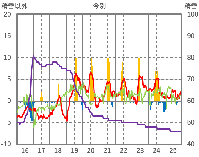 | 日 | 時 | 気温 | 降水 | 風向/風速 | 日照 | 積雪 | 降雪 |