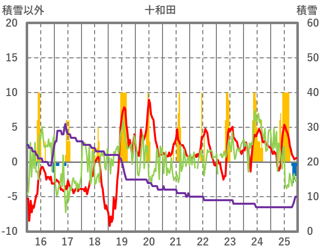 | 日 | 時 | 気温 | 降水 | 風向/風速 | 日照 | 積雪 | 降雪 |