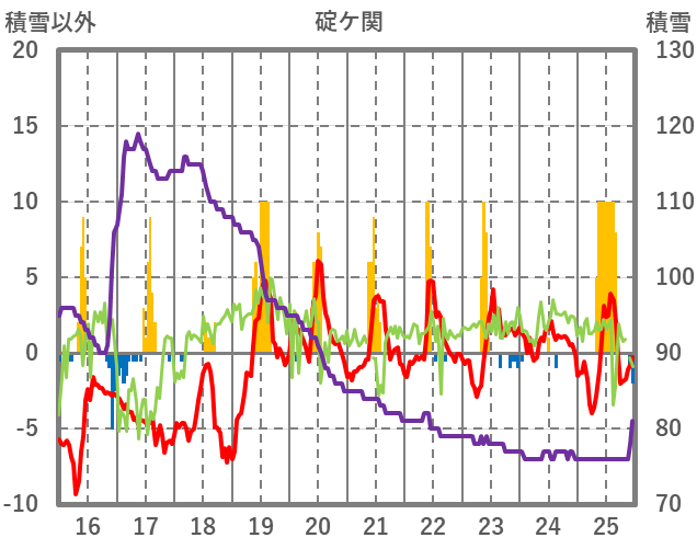 | 日 | 時 | 気温 | 降水 | 風向/風速 | 日照 | 積雪 | 降雪 |