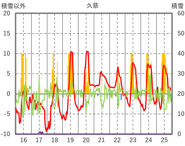 | 日 | 時 | 気温 | 降水 | 風向/風速 | 日照 | 積雪 | 降雪 |