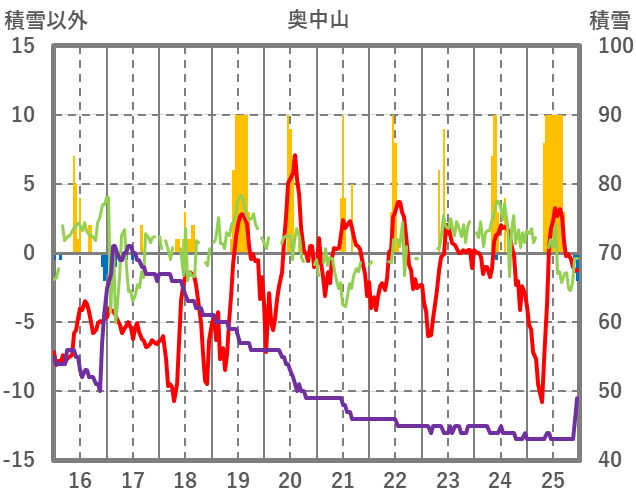 | 日 | 時 | 気温 | 降水 | 風向/風速 | 日照 | 積雪 | 降雪 |