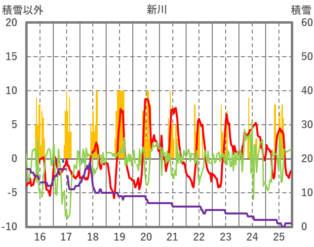 | 日 | 時 | 気温 | 降水 | 風向/風速 | 日照 | 積雪 | 降雪 |