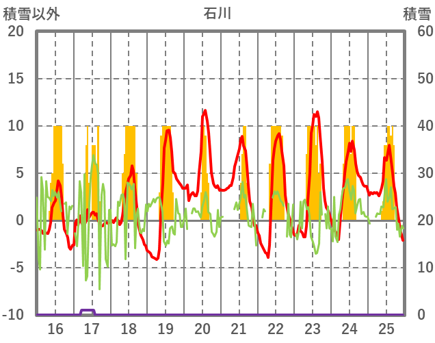 | 日 | 時 | 気温 | 降水 | 風向/風速 | 日照 | 積雪 | 降雪 |