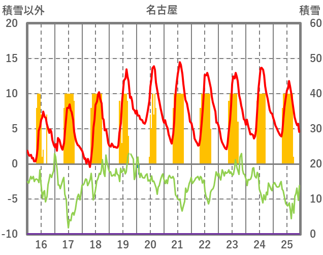 | 日 | 時 | 気温 | 降水 | 風向/風速 | 日照 | 積雪 | 降雪 |