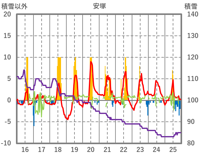 | 日 | 時 | 気温 | 降水 | 風向/風速 | 日照 | 積雪 | 降雪 |