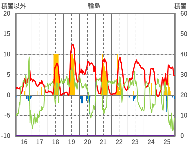 | 日 | 時 | 気温 | 降水 | 風向/風速 | 日照 | 積雪 | 降雪 |
