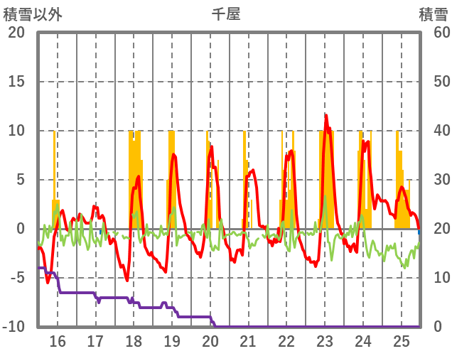 | 日 | 時 | 気温 | 降水 | 風向/風速 | 日照 | 積雪 | 降雪 |