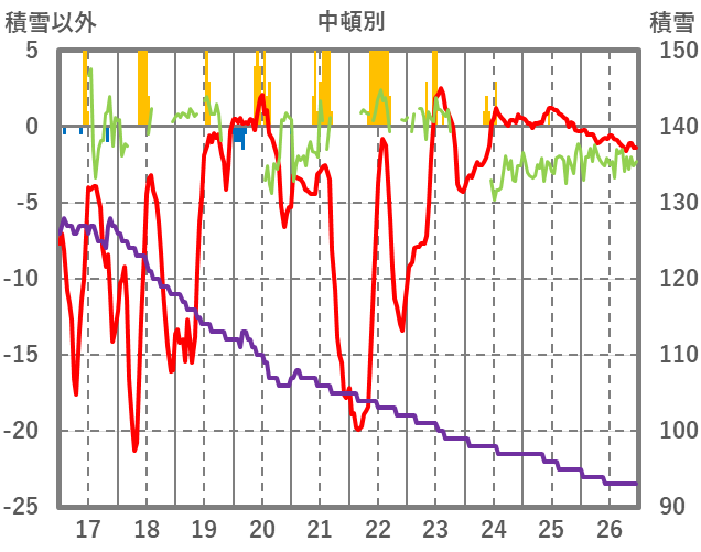 | 日 | 時 | 気温 | 降水 | 風向/風速 | 日照 | 積雪 | 降雪 |