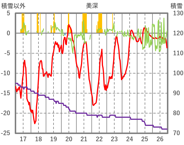 | 日 | 時 | 気温 | 降水 | 風向/風速 | 日照 | 積雪 | 降雪 |