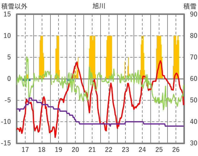 | 日 | 時 | 気温 | 降水 | 風向/風速 | 日照 | 積雪 | 降雪 |