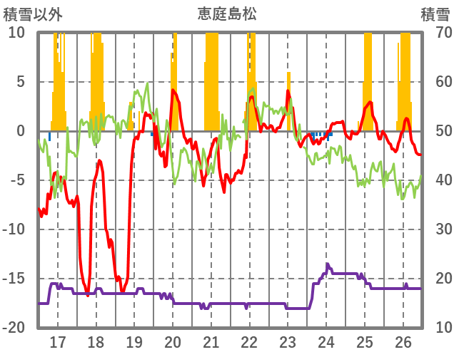 | 日 | 時 | 気温 | 降水 | 風向/風速 | 日照 | 積雪 | 降雪 |