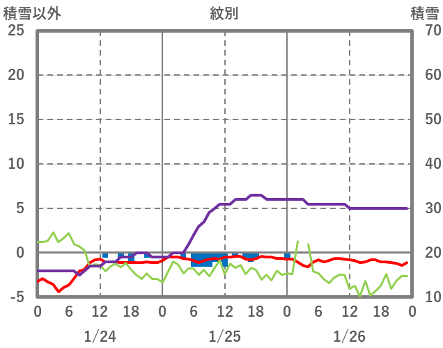| 日 | 時 | 気温 | 降水 | 風向/風速 | 日照 | 積雪 | 降雪 |
