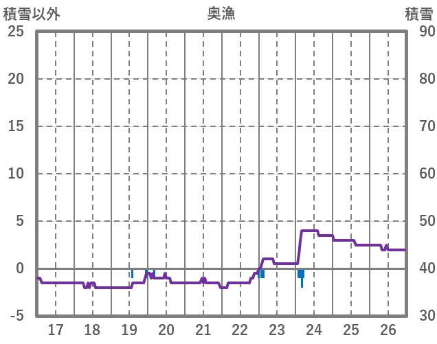| 日 | 時 | 気温 | 降水 | 風向/風速 | 日照 | 積雪 | 降雪 |
