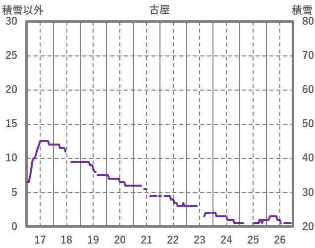 | 日 | 時 | 気温 | 降水 | 風向/風速 | 日照 | 積雪 | 降雪 |