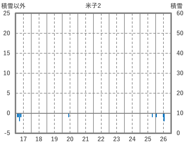 | 日 | 時 | 気温 | 降水 | 風向/風速 | 日照 | 積雪 | 降雪 |