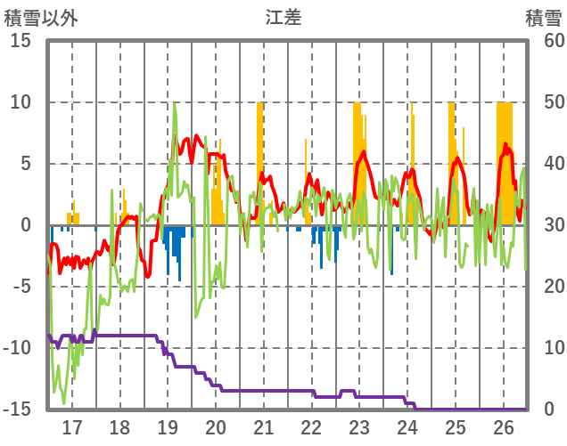 | 日 | 時 | 気温 | 降水 | 風向/風速 | 日照 | 積雪 | 降雪 |