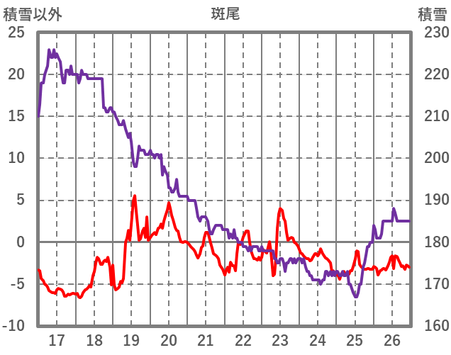 | 日 | 時 | 気温 | 降水 | 風向/風速 | 日照 | 積雪 | 降雪 |