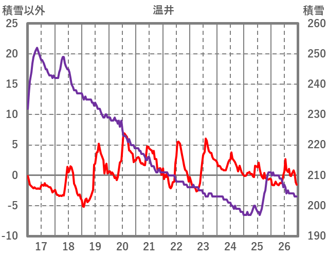 | 日 | 時 | 気温 | 降水 | 風向/風速 | 日照 | 積雪 | 降雪 |