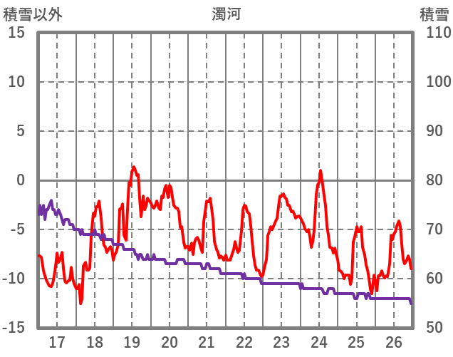 | 日 | 時 | 気温 | 降水 | 風向/風速 | 日照 | 積雪 | 降雪 |