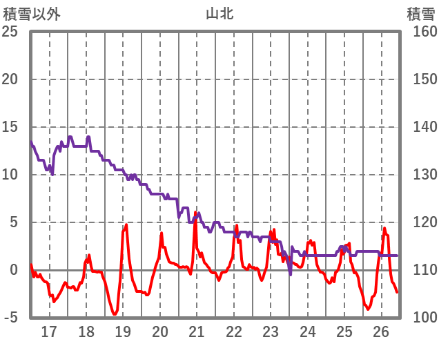 | 日 | 時 | 気温 | 降水 | 風向/風速 | 日照 | 積雪 | 降雪 |