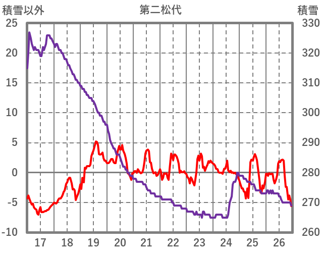 | 日 | 時 | 気温 | 降水 | 風向/風速 | 日照 | 積雪 | 降雪 |
