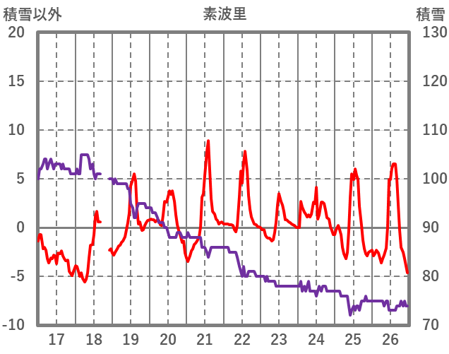 | 日 | 時 | 気温 | 降水 | 風向/風速 | 日照 | 積雪 | 降雪 |