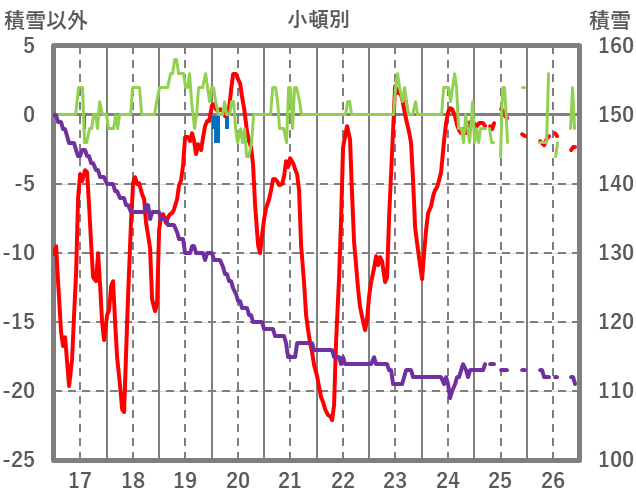 | 日 | 時 | 気温 | 降水 | 風向/風速 | 日照 | 積雪 | 降雪 |