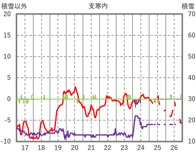 | 日 | 時 | 気温 | 降水 | 風向/風速 | 日照 | 積雪 | 降雪 |