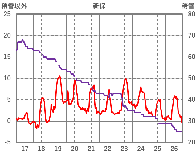 | 日 | 時 | 気温 | 降水 | 風向/風速 | 日照 | 積雪 | 降雪 |