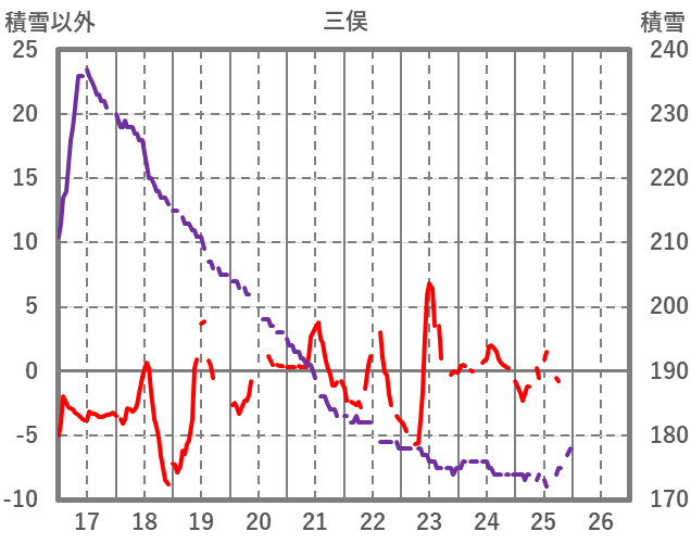 | 日 | 時 | 気温 | 降水 | 風向/風速 | 日照 | 積雪 | 降雪 |