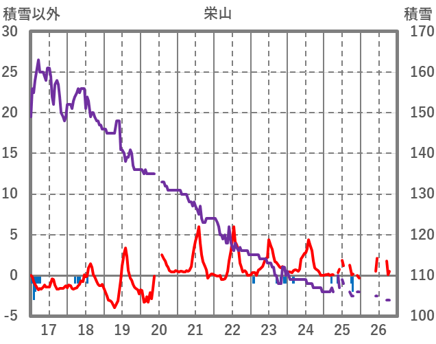 | 日 | 時 | 気温 | 降水 | 風向/風速 | 日照 | 積雪 | 降雪 |