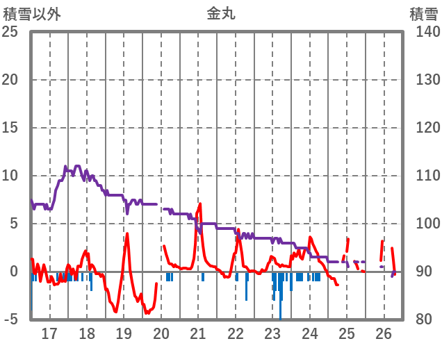 | 日 | 時 | 気温 | 降水 | 風向/風速 | 日照 | 積雪 | 降雪 |