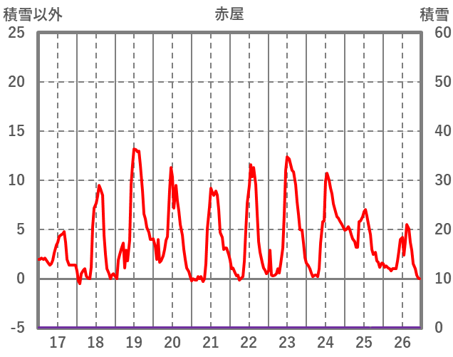 | 日 | 時 | 気温 | 降水 | 風向/風速 | 日照 | 積雪 | 降雪 |