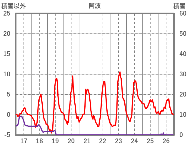 | 日 | 時 | 気温 | 降水 | 風向/風速 | 日照 | 積雪 | 降雪 |